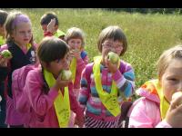 PRVI DNEVI SO ZELO HITRO MINEVALI IN PRAV KMALU SMO SE ODPRAVILI NA NARAVOSLOVNI DAN V SADOVNJAK. UGRIZNILI SMO V VELIKO, ZDRAVO JABOLKO TER IZVEDELI VELIKO NOVEGA