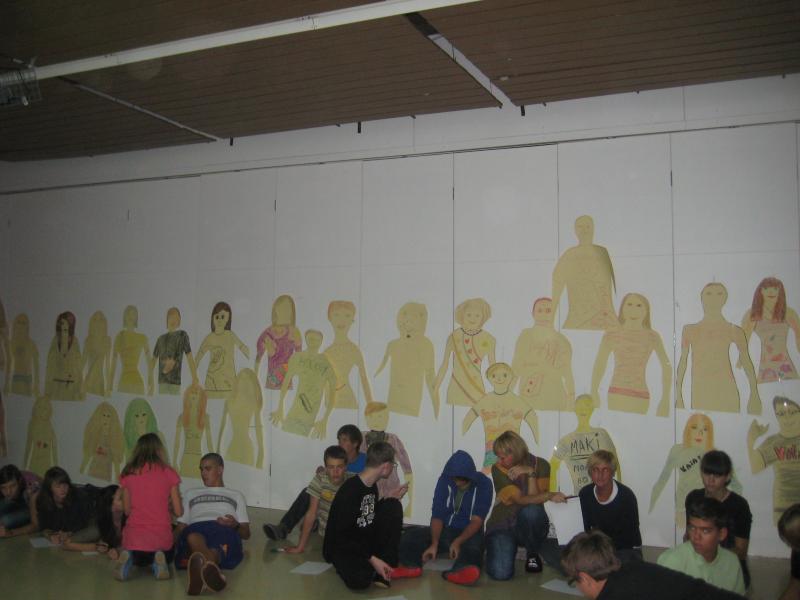 Po prebitem ledu smo ugotavljali svoje pozitivne lastnosti. Narisali smo obrise drug drugega in si poklonili nalepke, ki so povedale nekaj lepega o vsakem posamezniku.