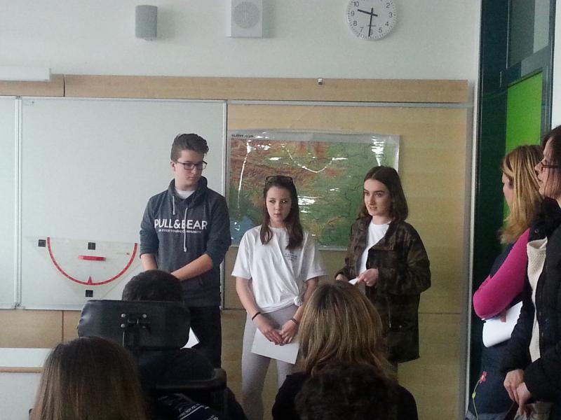 Učenci Aleš, Rebeka in Hanna so predstavljali vse osnovne šole bivše Občine Domžale. Poročali so o ugotovitvah in dogovorih z medobčinskega otroškega parlamenta, ki je potekal 4.2.2016 v OŠ Venclja Perka.
