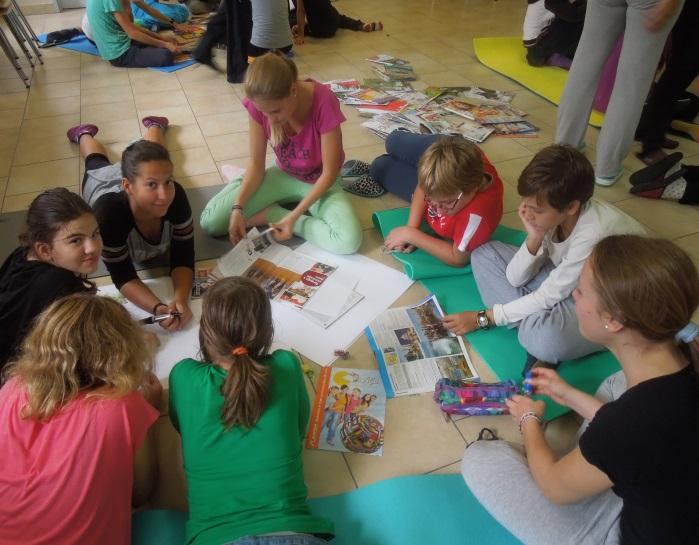 V soboto smo se lotili naše teme in se v delavnicah lotili razmer v družbi. V manjših skupinah smo razmišljali in razglabljali ter izdelali časopise, ki so vsebovali razmišljanja na temo razmer v družbi. Najbolj izpostavljena tema, ki smo jo zaznali so slabi medsebojni odnosi, družbeno razslojevanje, osamljenost in tudi nezdrav oz. nekoristen način preživljanja prostega časa.