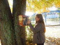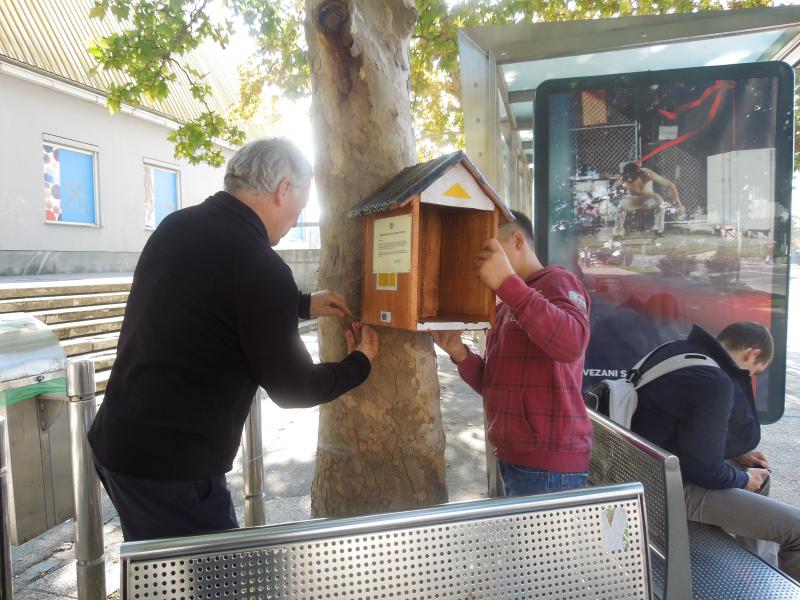 Tako bomo v Tednu otroka od 7.- 11.10.2013 namestili 3 bralne hiške na lokacijah v bližini šole, v katerih bomo pustili knjige z obvestilom, oziroma navodilom, kako projekt »Knjigobežnice« poteka. Prva hiška je na vhodu PS na OŠ Venclja Perka, druga na avtobusni postaji proti Kamniku (na drevesu) in tretja v parku pri Občini Domžale:
