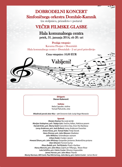 v petek, 31. januarja vas ob 20.00 uri vabimo v Halo komunalnega centra v Domžale na dobrodelni koncert Simfoničnega orkestra Domžale-Kamnik.