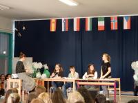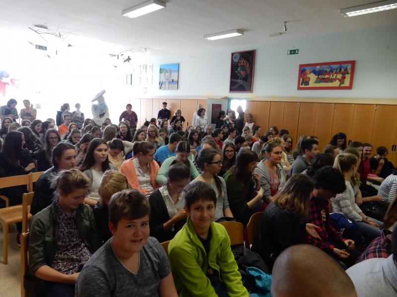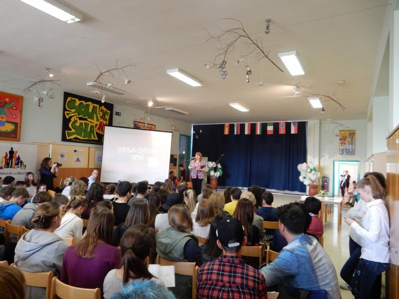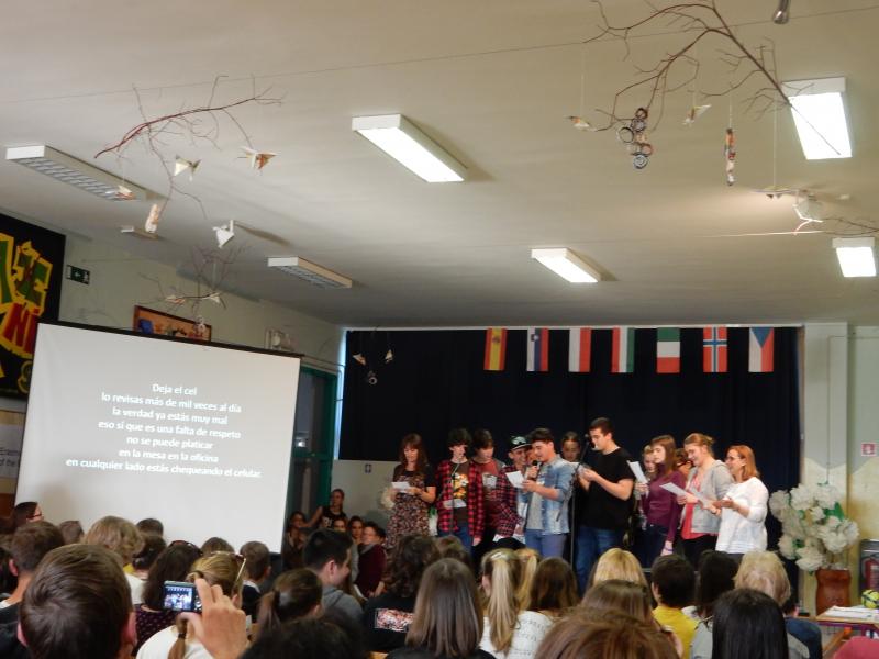 Z učenci, ki se učijo španščine, smo se udeležili osnovnošolskega španskega festivala Hola chic@s. Letos je bil festival mednarodni, saj so poleg slovenskih osnovnošolcev sodelovali tudi srednješolci iz Španije, Italije, Češka, Madžarske, Poljske in Norveške. Učenci so sodelovali na delavnicah in uprizorili igrico na temo mobitela.