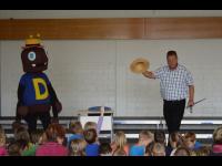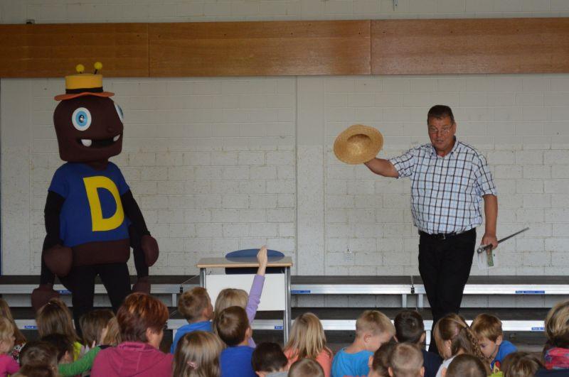 V ponedeljek, 3. oktobra 2016, na prvi dan letošnjega Tedna otrok, je domžalska maskota Hrošček Simon obiskal prvošolčke na naši šoli. Skupaj z Markom Hrovatom sta se pripravila kratek program, učenci pa so zapeli pesmico »Trije korenjaki«. Otroke je pozdravila tudi podžupanja mag. Renata Kosec. Na njeno vprašanje, v kakšnem svetu želijo živeti, so otroci odgovorili, da si želijo živeti v Sloveniji, Ljubljani in na Sardiniji. Tema letošnjega Tedna otrok je namreč »Svet, v katerem želim živeti«.